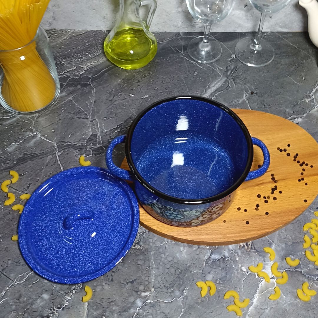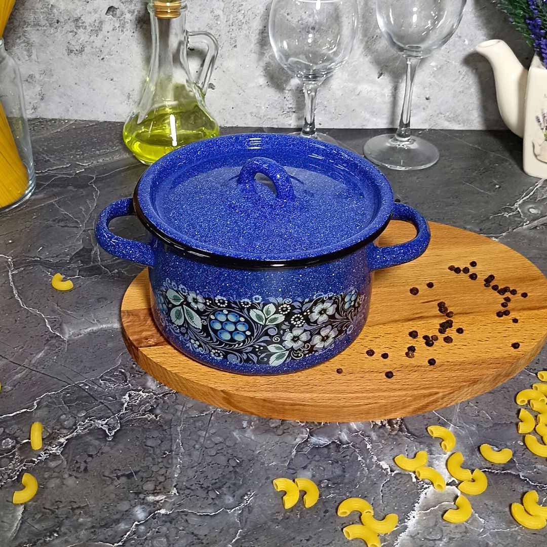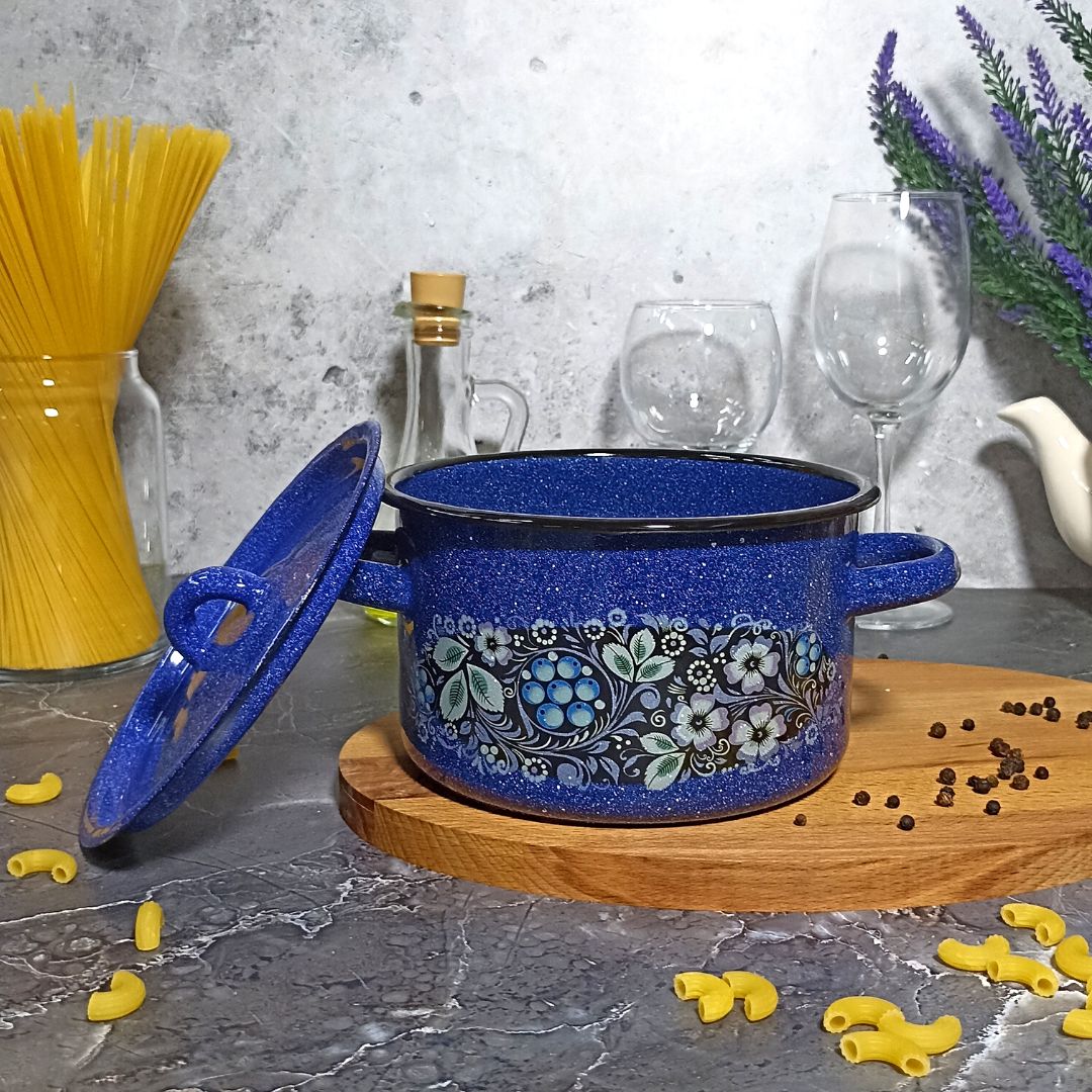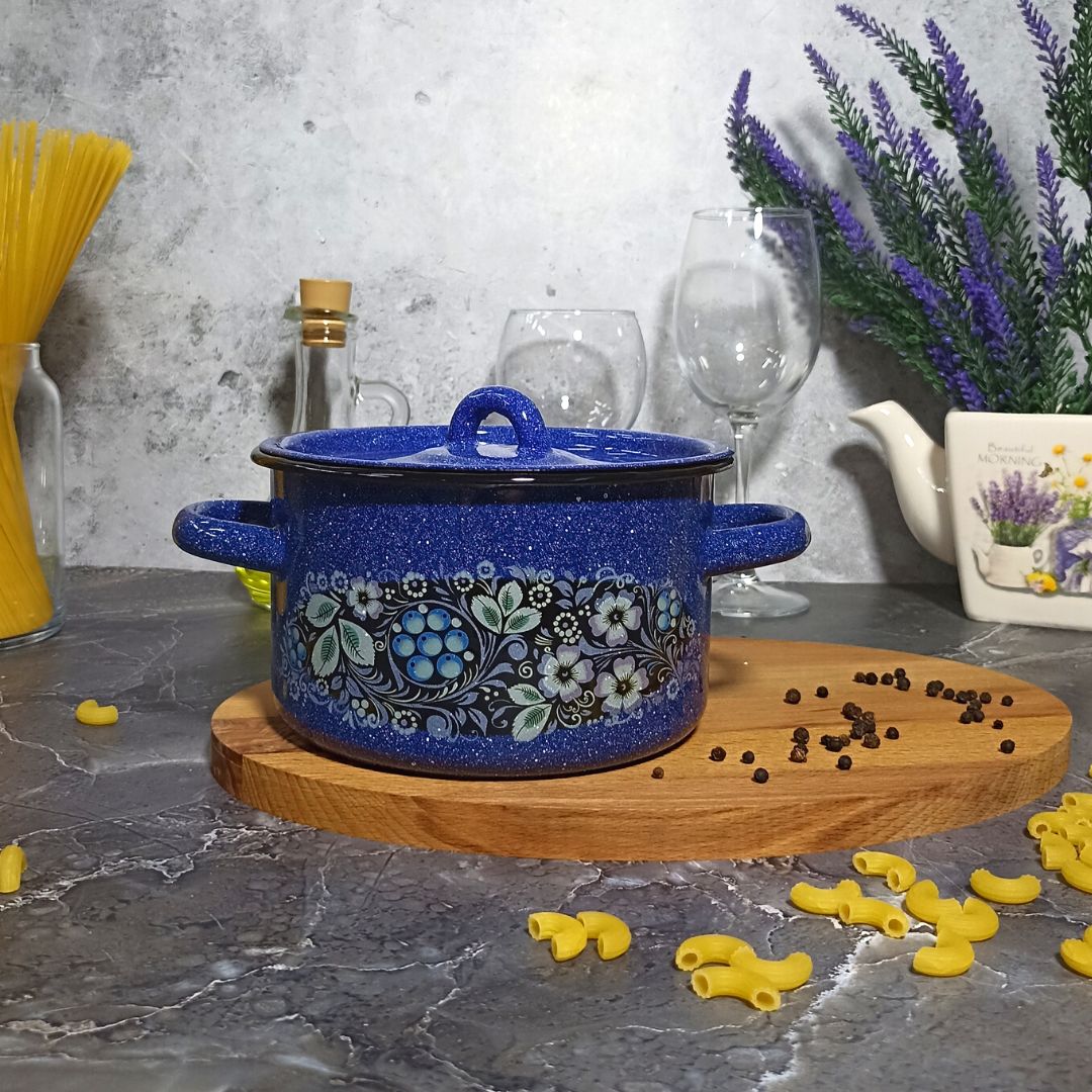 Выбирая кастрюлю эмалированную цилиндрическую объемом 1,5 литра с зернистым рисунком "Голубика" от "СтальЭмаль", вы получаете качественный и надежный товар.