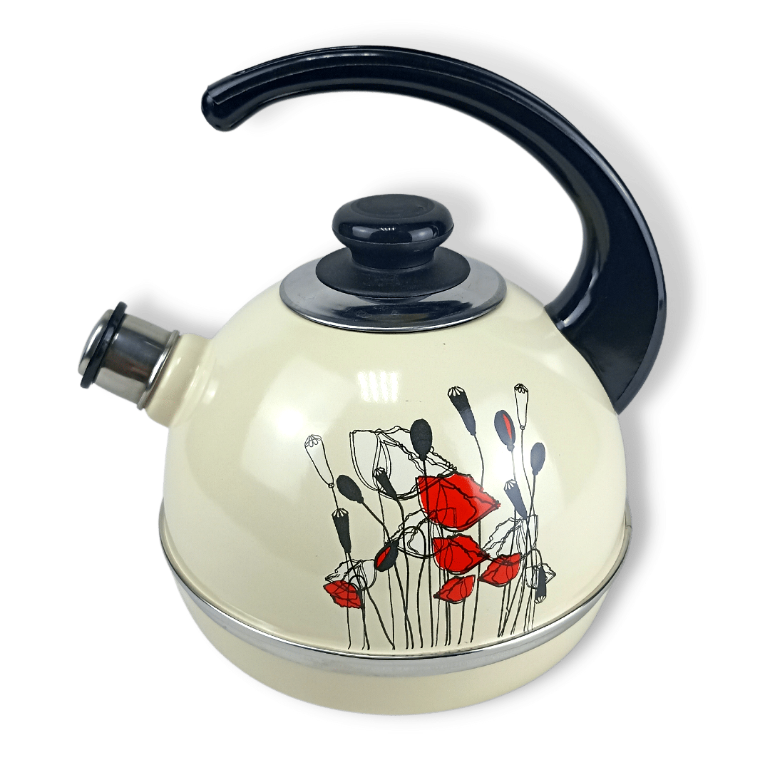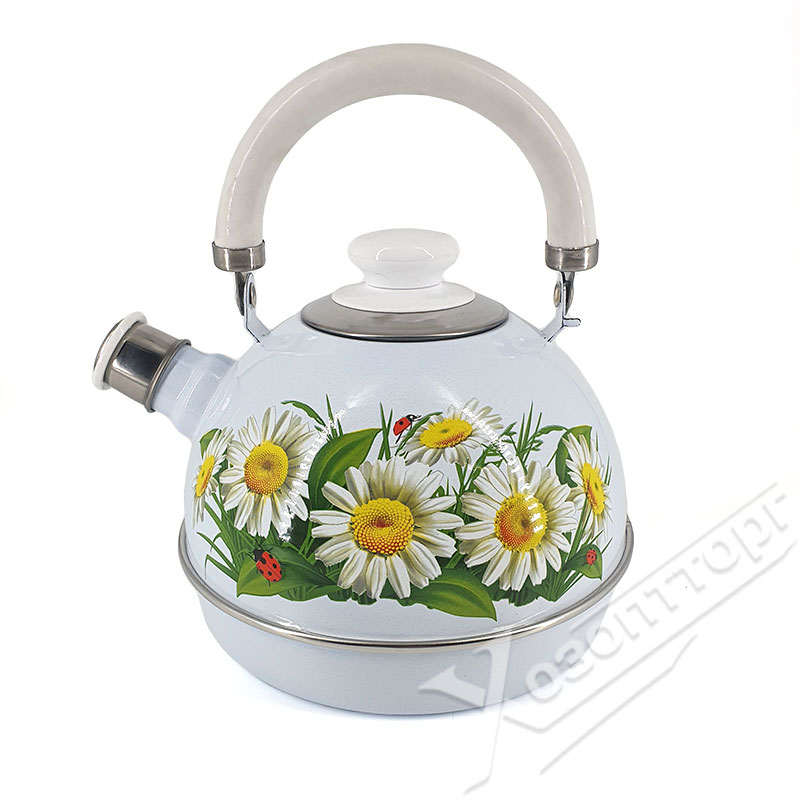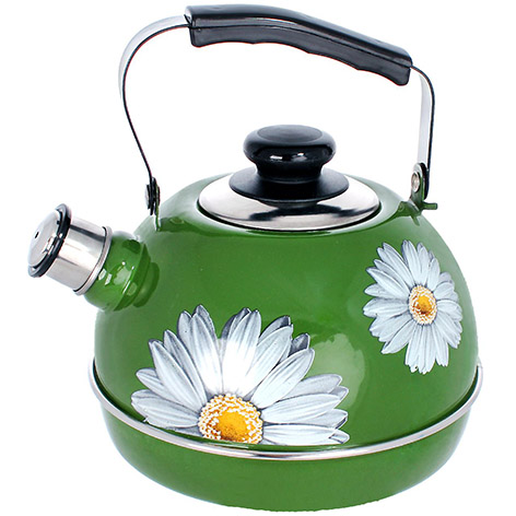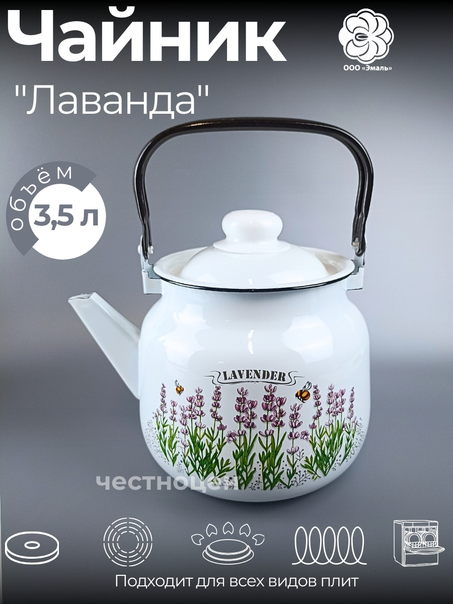 Чайник объёмом 3,5 литра выполнен из прочной и долговечной эмалированной стали. Он станет не только надёжным помощником на кухне, но и стильным дополнением к интерьеру благодаря оригинальному дизайну.