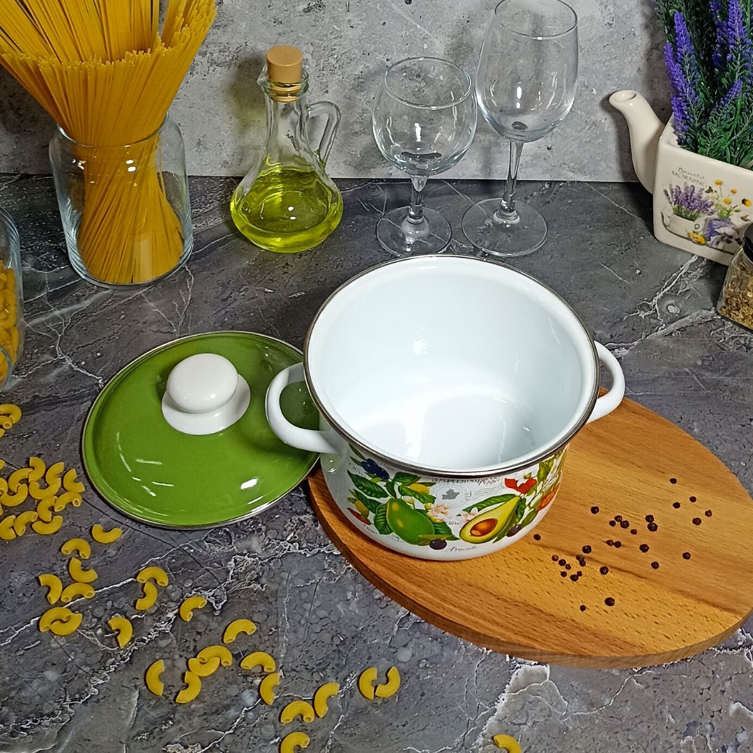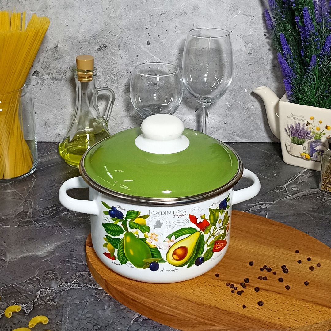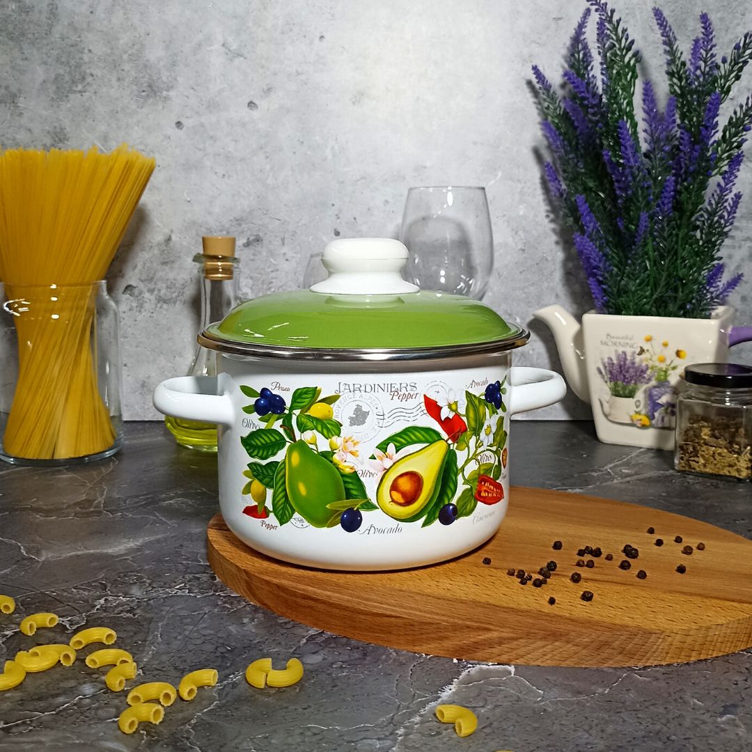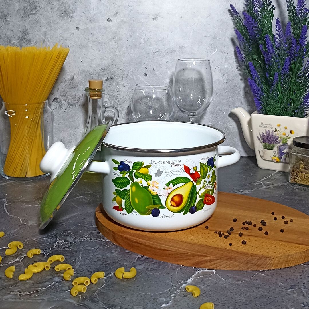 Посуда Стальэмаль рассчитана на длительный срок эксплуатации. Она подходит для любых видов плит и посудомоечных машин. Прочный корпус из холоднокатаного стального проката гарантирует эффективную тепловую обработку пищи. Благодаря двойному слою эмалевого покрытия исключается проникновение в пищу оксидов металла. Покрытие инертно и устойчиво к пищевым кислотам, не вступает во взаимодействие с продуктами и не искажает их вкусовые качества. Эмалированная кастрюля практична и долговечна. Пища не вступает в контакт с металлом, поэтому приготовленная еда будет не только вкусной, но и полезной. Можно готовить на плитах любого типа. Эмалированную посуду легко мыть, в том числе в посудомоечной машине.