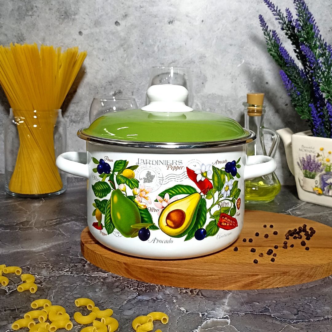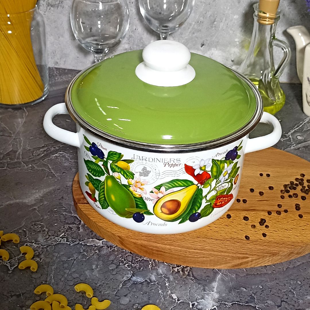 Кастрюля эмаль Авокадо 6RD181М белосн. изготовлена с применением высококачественного двухслойного жаропрочного эмалевого покрытия, нержавеющий ободок, крышка с ненагревающейся ручкой. Имеет хорошие характеристики износостойкости.
