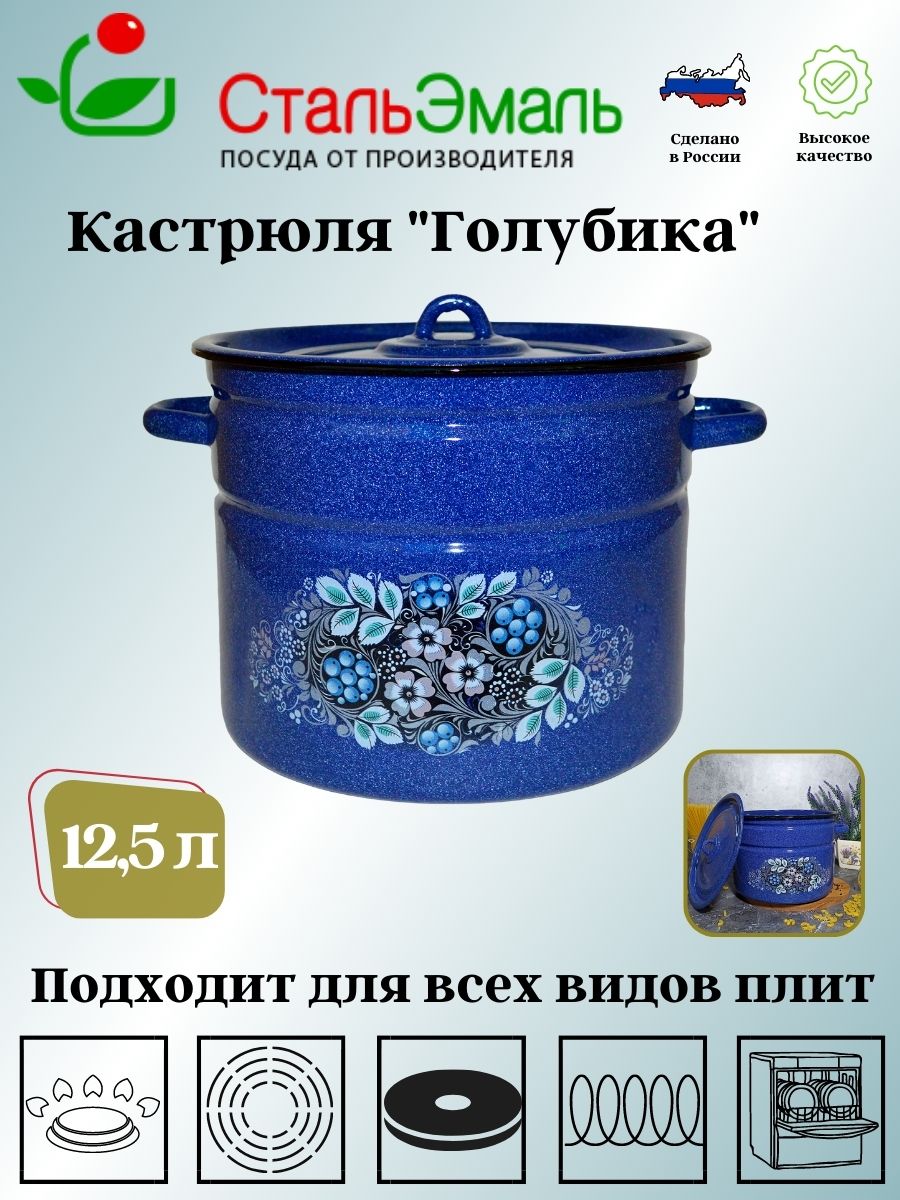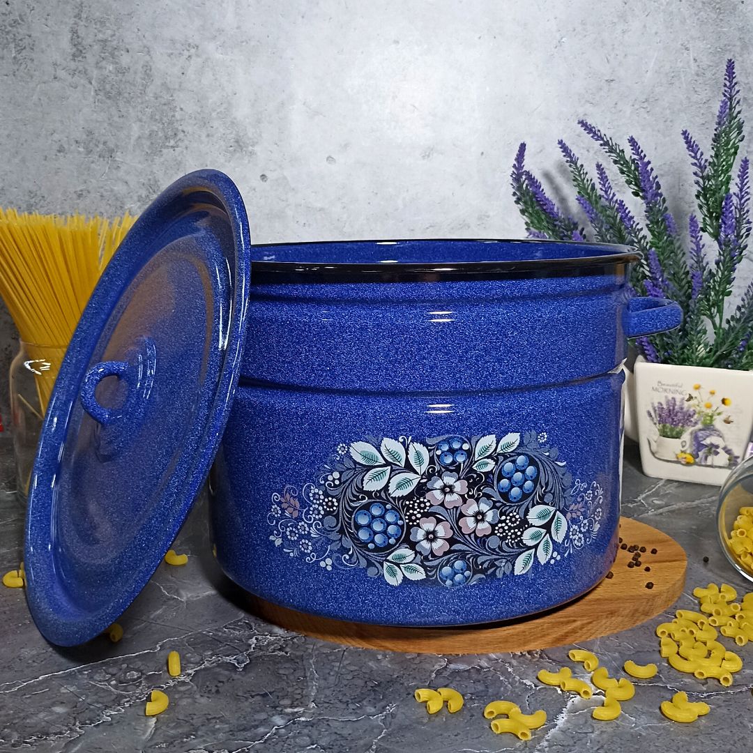 Кастрюля 12,5л цил. син. с зерн. Голубика 1с300с