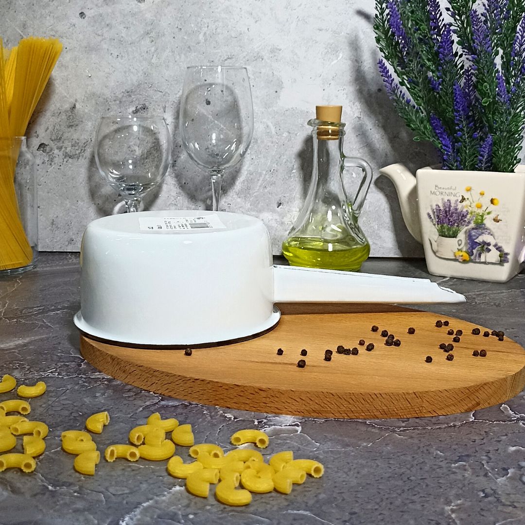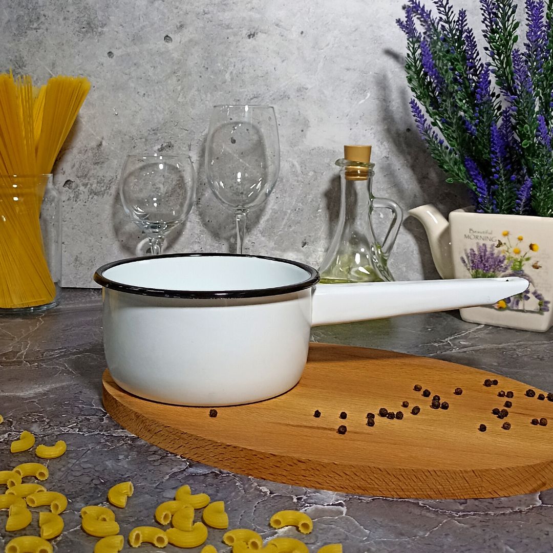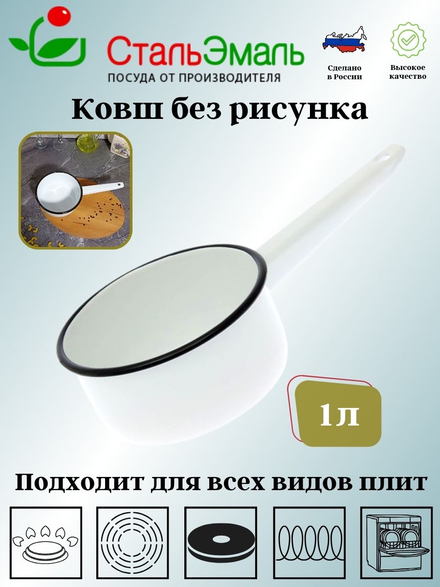 Ковш изготовлен из высококачественной стали с эмалированным покрытием. Пища не пригорает и не прилипает к стенкам и дну посуды. Можно использовать на газовых, электрических и стеклокерамических плитах.