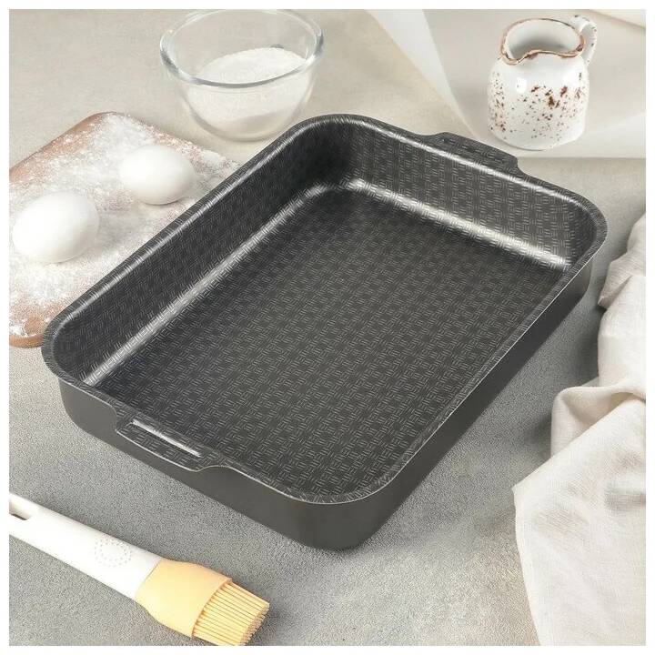 Легкий, удобный и красивый противень Лён вместительной прямоугольной формы идеально подходит для приготовления десертов, запеканок и многослойных вторых блюд в духовке.