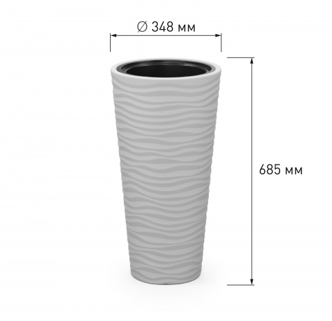 Напольное кашпо для уличных и домашних растений – Оазис. Изделие представлено в трех литражах и нескольких цветовых решениях. Специальная внутренняя вставка облегчит процесс высадки растения и уход за ним. Изделие отличается особой прочностью и морозостойкостью. Внешне кашпо напоминает песчаные дюны, посреди которых расположился цветочный Оазис. Данный дизайн отлично впишется в любой интерьер.