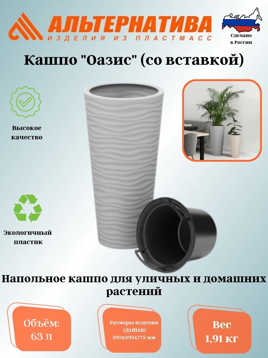 Кашпо "Оазис" 63л (со вставкой 13л) серый М8082