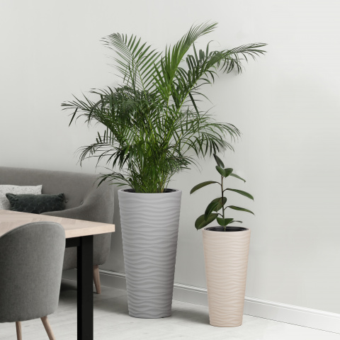 Внешне кашпо напоминает песчаные дюны, посреди которых расположился цветочный Оазис. Данный дизайн отлично впишется в любой интерьер.