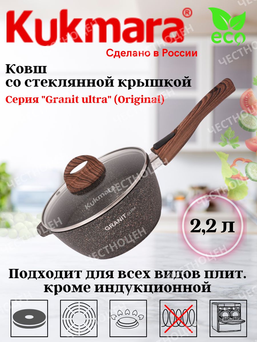Ковш 2,2л со съемной ручкой, стекл крышка, АП линия Granit Ultra (original) кго0225а
