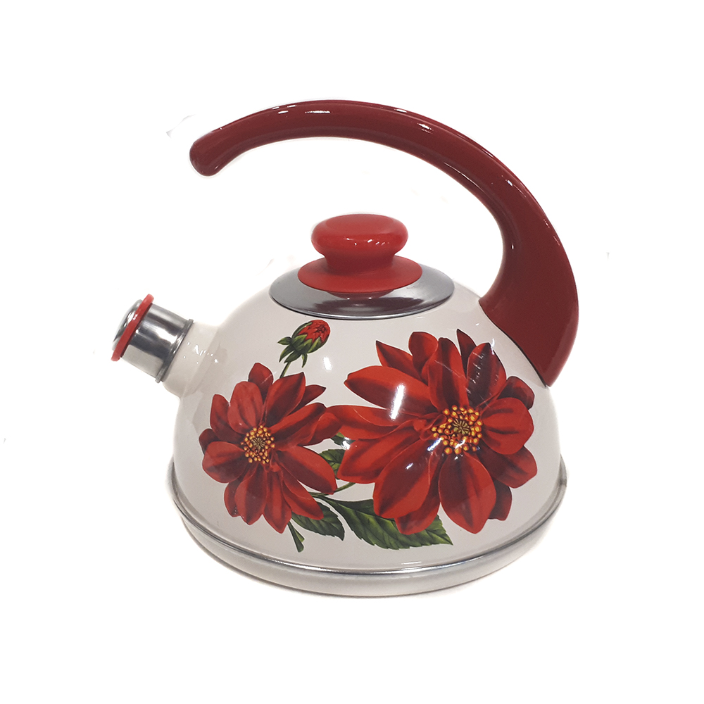 Описание•Чайник эмалированный со свистком•Внешнее трехслойное эмалевое покрытие не вступает во взаимодействие с пищевыми продуктами, защищает сталь от коррозии, придает посуде гладкую стекловидную поверхность и надежно защищает от кислот и щелочей•Цвет эмали: белый, с деколью•Декор: нержавеющая сталь•Фиксированная консольная бакелитовая ручка•Свисток съемный из нержавеющей стали•Крышка плотно прилегает к краю•Может быть использован на всех типах кухонных плит: электрических, газовых, керамических, индукционных•Подходит для мытья в посудомоечной машине