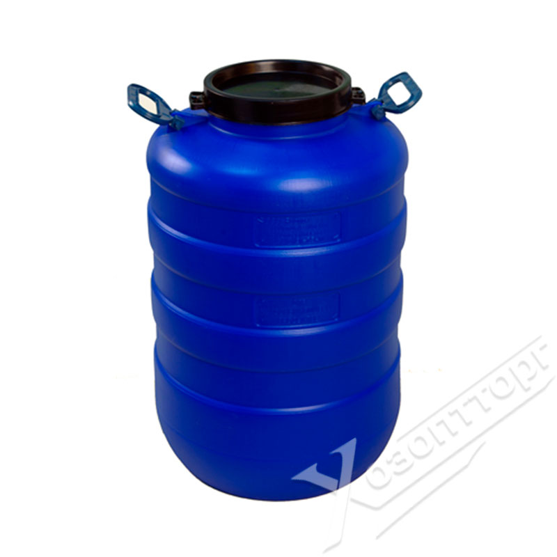 Бочка пластиковая пищевая для дома и дачи, полезный объем - 40 литра, диаметр горловины - 195 мм. Винтовая крышка, два вида ручек - навесные и углубленные на корпусе.