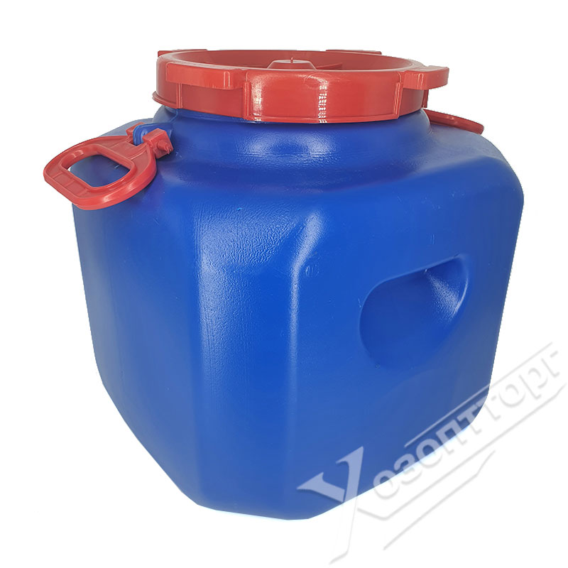 Бочка пластиковая пищевая для дома и дачи, полезный объем - 30 литров, диаметр горловины 195 мм. Винтовая крышка, два вида ручек - навесные и углубленные на корпусе.