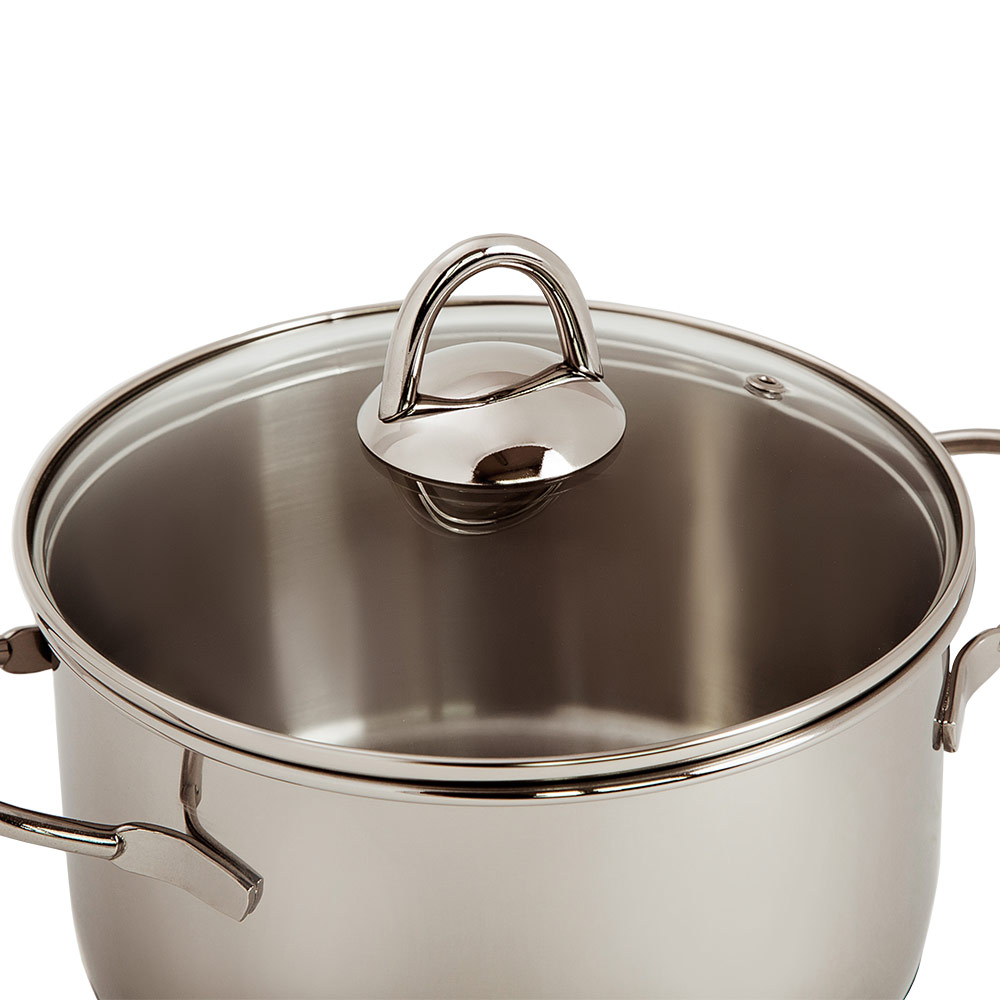 Кастрюля «Классика-ПРИМА» имеет большой объём на 8 л и станет помощником в производстве зимних заготовок, блюд для масштабного застолья и т.д. Как и вся серия посуды, имеет современный универсальный дизайн, со стеклянной крышкой и зеркальной полировкой. Быстро и равномерно нагревается на плитах всех типов (кроме индукционных), долго сохраняет блюдо тёплым благодаря теплораспределительному дну. Легко моется без агрессивной химии, не окисляется и не теряет потребительских качеств даже после длительного срока использования.