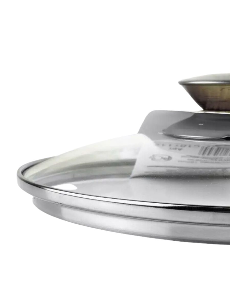 Крышка стеклянная 160мм с ободом и ручкой из нерж.стали, деколь серая с16т112