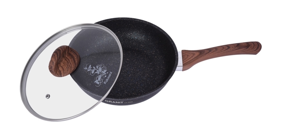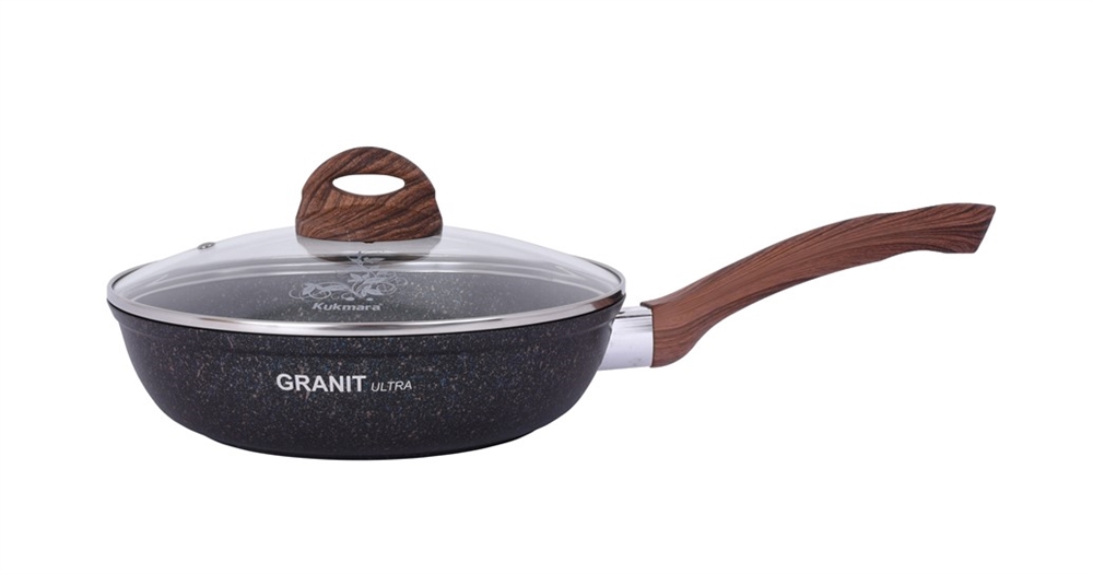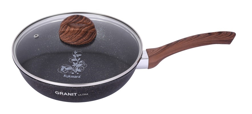 Сковорода 240мм с ручкой, со стеклянной крышкой,антипригарное покрытие"Granit ultra" (blue) сгг241а