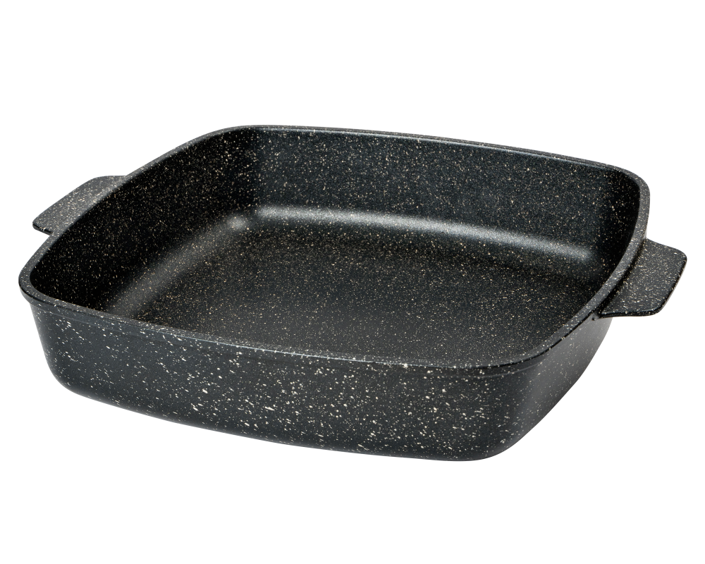 Литой алюминиевый противень с антипригарным покрытием ООО «Горница» - это универсальная посуда, предназначенная для качественного приготовления блюд в духовом шкафу. Подходит для запекания мяса, рыбы, овощей, пиццы, запеканок, десертов.«Гранит». Коллекция «мраморной посуды» с улучшенным четырёхслойным антипригарным покрытием. Дополнительный слой с мраморным эффектом увеличивает износостойкость и создаёт оттенок чёрного мрамора. Противень для запекания изготовлен из безопасного алюминиевого сплава. Для приготовления блюд в противне подходит духовка электрическая и газовая. Имеет толстое дно и стенки, что способствует равномерному распределению тепла по рабочей поверхности. Противни для духовки имеют экологичное антипригарное покрытие на водной основе без вредных химических соединений.