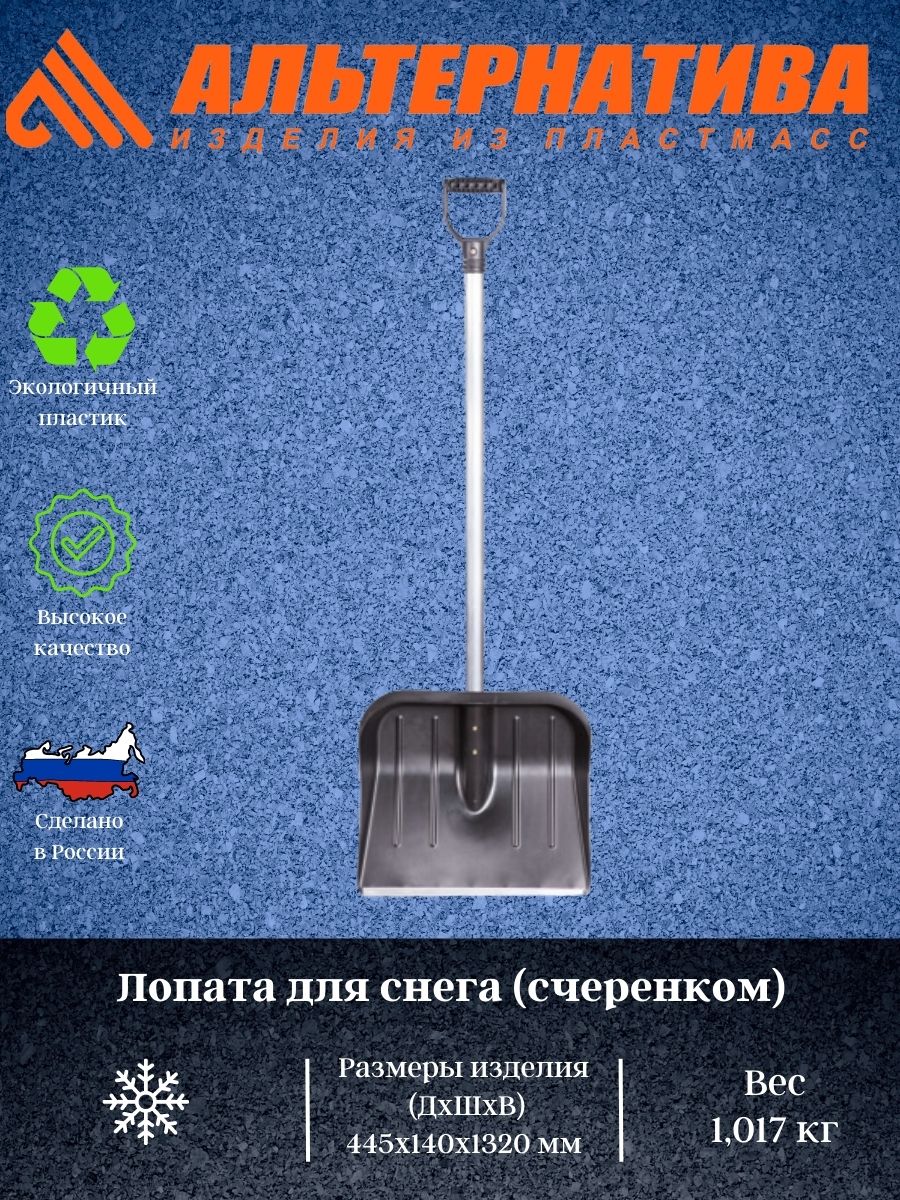 Легкая, удобная и прочная лопата для снега, станет вам отличным помощником в снежную зиму. Рабочая часть лопаты произведена из прочного, износостойкого полипропилена. Алюминиевый черенок с удобной ручкой делает лопату максимально защищённой от нагрузок и продлевает срок службы инструмента.