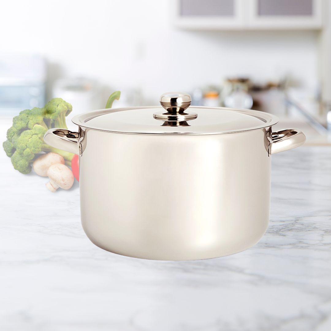 Товары коллекции имеют зеркальную полировку, за счет которой приготовленные блюда остывают гораздо медленнее. Металлическая крышка выпукло-вогнутой формы. Такая конструкция обеспечивает конденсирование пара внутрь посуды. Ручки кастрюли, объёмные, прикреплены к корпусу надёжной точечной сваркой, они эргономичные и функциональные. Ручки незначительно нагреваются теплом от корпуса посуды при условии, что диаметр дна посуды совпадает или больше на 10–15 % диаметра конфорок. Но, несмотря на это, для защиты рук мы рекомендуем всегда использовать специальные кухонные прихватки из силикона или текстиля.