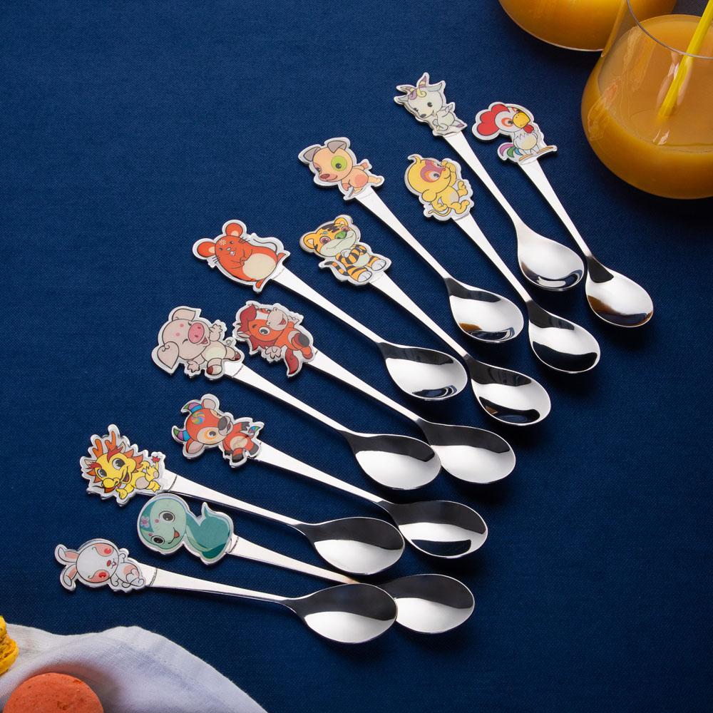 Малышу пора научиться самостоятельно кушать? Без мультяшной детской посуды здесь не обойтись. Во-первых, она вызывает неподдельный интерес у карапуза. Даже если совсем нет аппетита, оригинальный аксессуар заставит зачерпнуть ложку каши. Во-вторых, увлекшись игрой с необычными столовыми приборами, малыш забывает о капризах и активно съедает все, что приготовила мама. Металлическая детская ложка «Зверушка» станет прекрасным помощником новоиспеченных родителей. Увлечет и накормит маленького непоседу за считанные минуты.