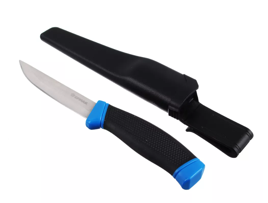Компактный и функциональный нож из прочной нержавеющей стали. Пригодится на охоте, рыбалке, в походе или на даче. Удобная прорезиненная рукоятка, удобно лежит в руке, в комплекте прилагается чехол (ножны). Эффективен на рыбалке и в повседневном бытовом использовании. Активно пользуется спросом у рыбаков, туристов и автолюбителей.