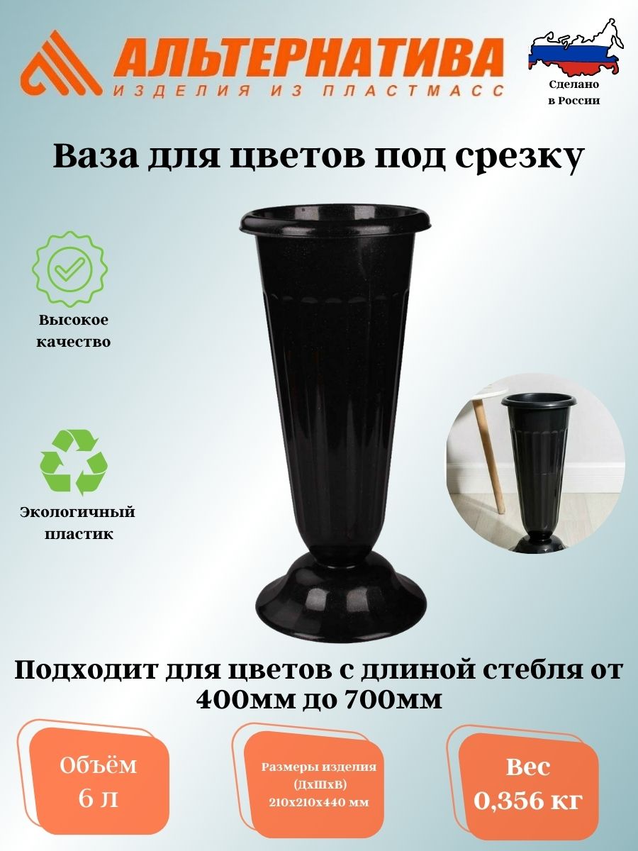 Ни одно торжество не обходится без цветов. Они способны преобразить любой интерьер. Пластиковая ваза с цветами позволит украсить праздничный зал, сделав мероприятие запоминающимся. Ваза для цветов под срезку также поможет сохранить красоту и свежесть букетов в цветочном магазине. Она имеет широкое устойчивое основание, подходит для цветов с длиной стебля от 400мм до 700мм.