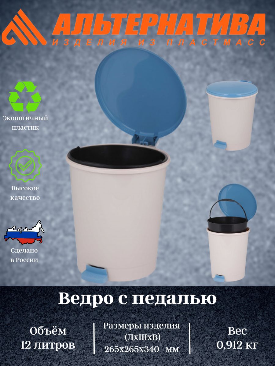 Ведро предназначено для сбора и хранения мусора. Ведро отлично подойдет для использования на кухне, в ванной комнате, а также офисах, медицинских учреждениях и школах, на предприятиях общественного питания и в магазинах.