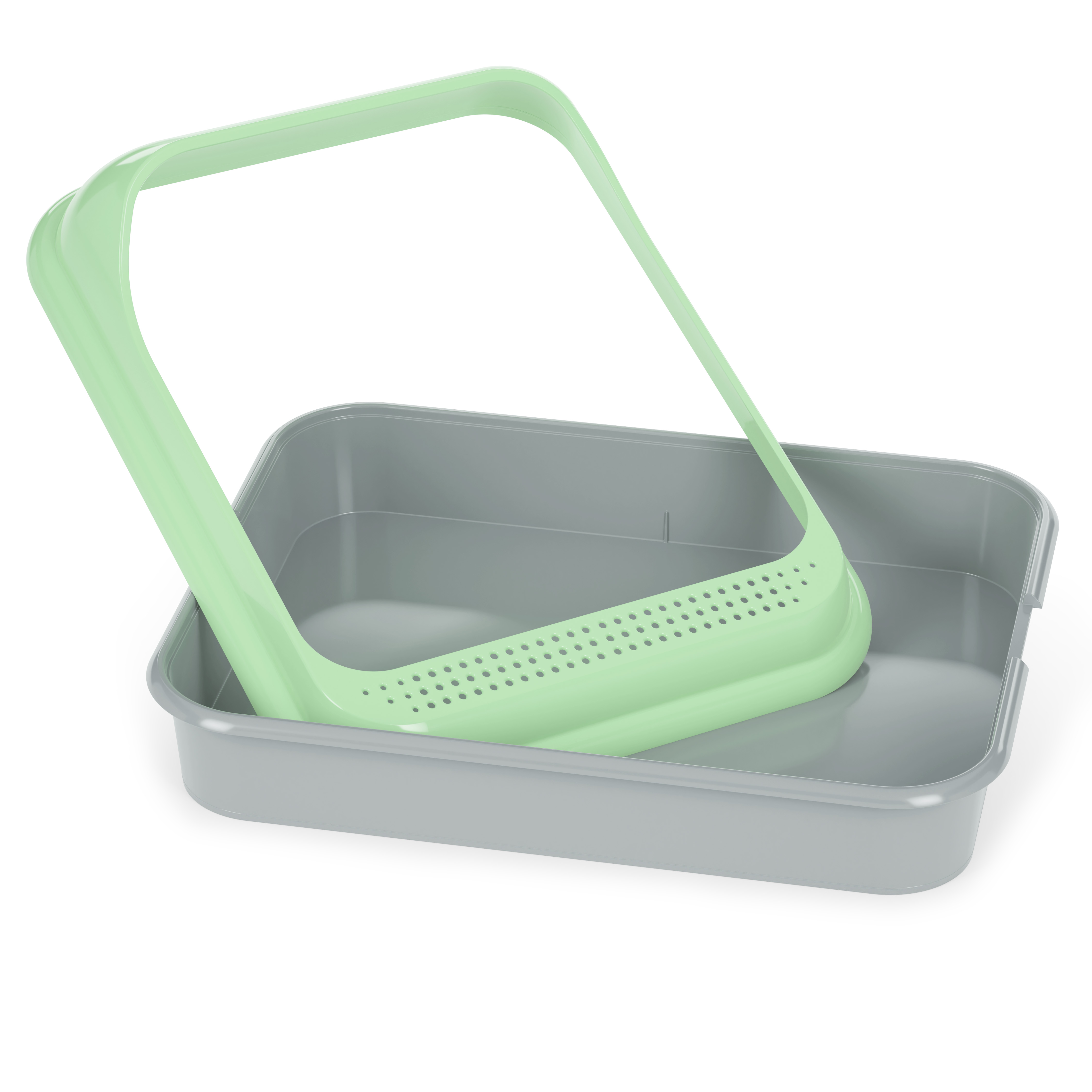 Лоток из коллекции «Барсик» изготовлен из качественного прочного пластика. Материал абсолютно безопасен для здоровья питомца и не имеет посторонних химических запахов. Высокий борт надежно фиксируется по периметру лотка и предотвращает разбрасывание наполнителя. Борт легко убирается, если Ваш любимец еще совсем маленький и ему трудно залезть в лоток. Отсутствие острых углов делает изделие безопасным. Туалет не занимает много места, легко моется водой.