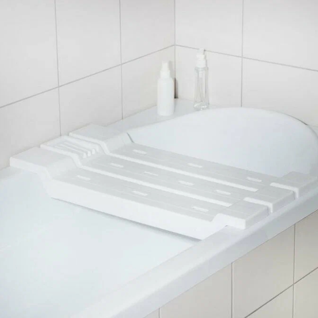 Полка для ванной (сиденье) изготовлена и прочного пластика. Сиденье дополнит функционал ванной и станет удобным аксессуаром при купании для людей, кому в силу своего возраста и здоровья сложно принимать водные процедуры стоя. Сиденье подходит к стандартной ванне. Благодаря конструкции, сиденье не скользит, не царапает покрытие. На одном из краев полки предусмотрено место для мыла. Допустимая нагрузка до 100 кг. Такую полку можно использовать как подставку для таза при купании детей.