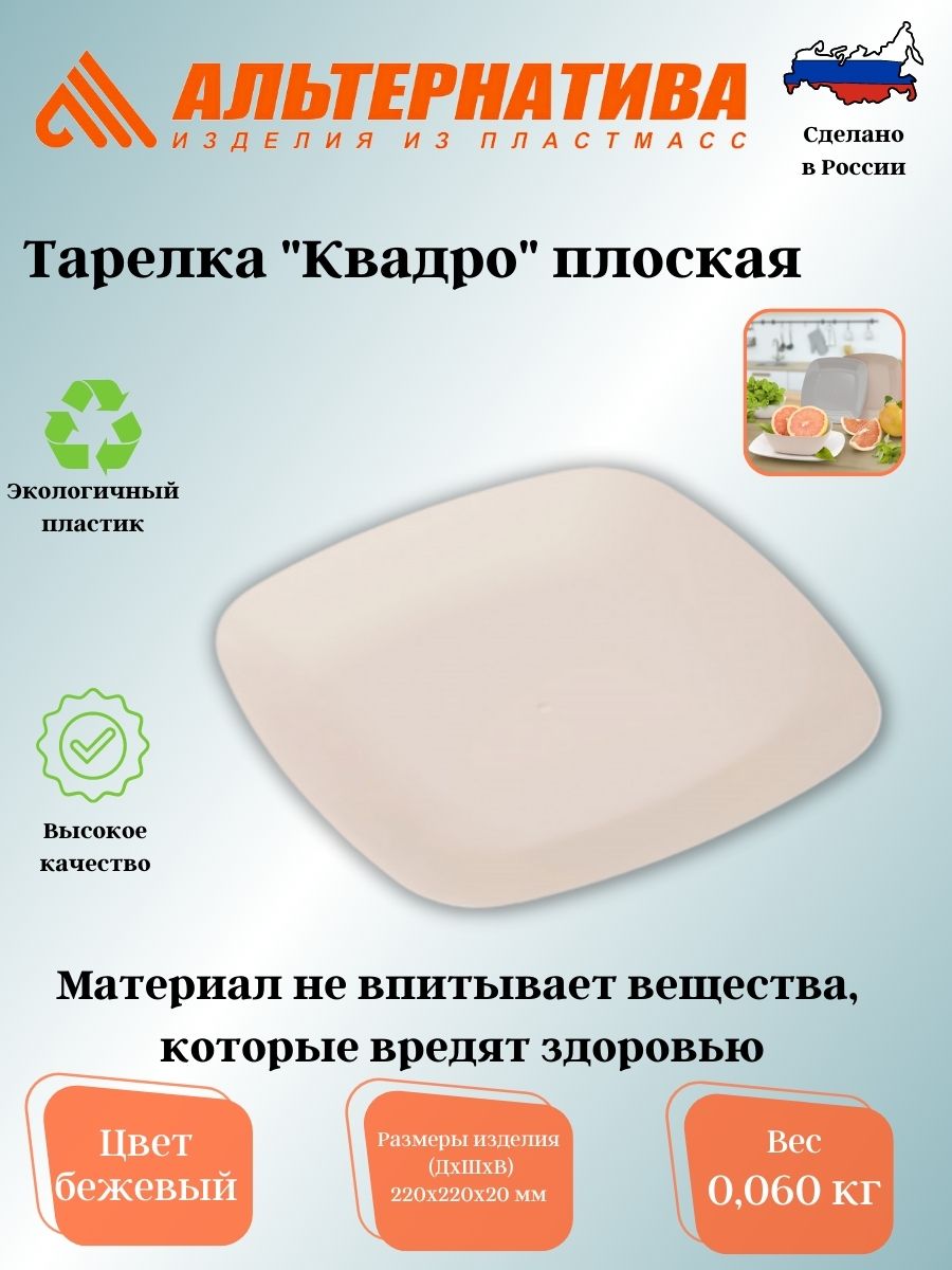 Тарелка "Квадро" имеет плоскую квадратную форму без острых углов. Изготовлена из высококачественного пластика, что придает ей прочности. Предназначена для многоразового использования. Вместительная квадратная форма позволяет использовать тарелку для подачи горячего, салата или десерта.