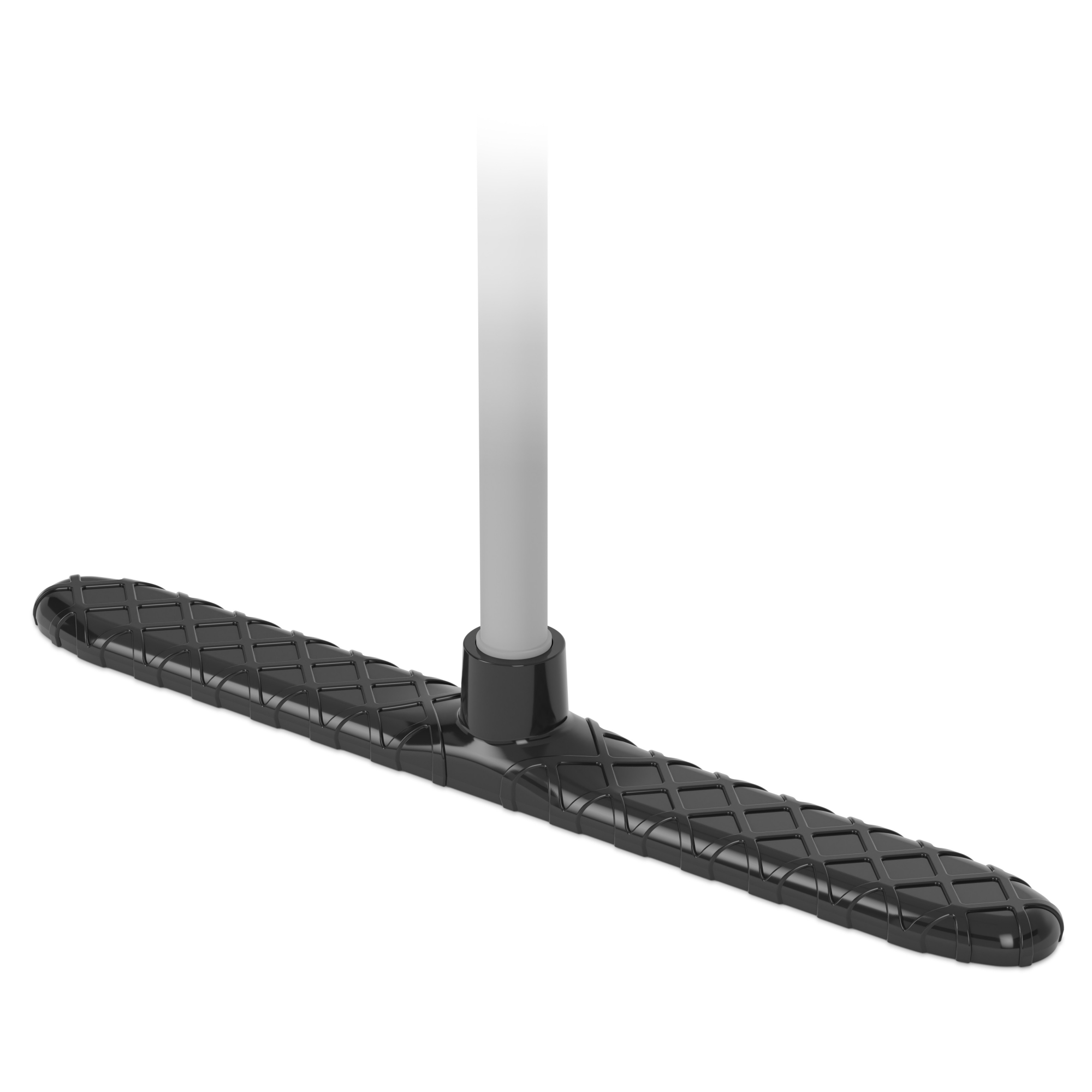 Конструкция изделия состоит из швабры и черенка. Насадка произведена из полипропилена и имеет ребристую поверхность. Черенок имеет алюминиевый каркас и покрыт ребристой пленкой, благодаря чему швабра не будет выскальзывать из рук. Изделие имеет компактный размер и не займет много места при хранении.