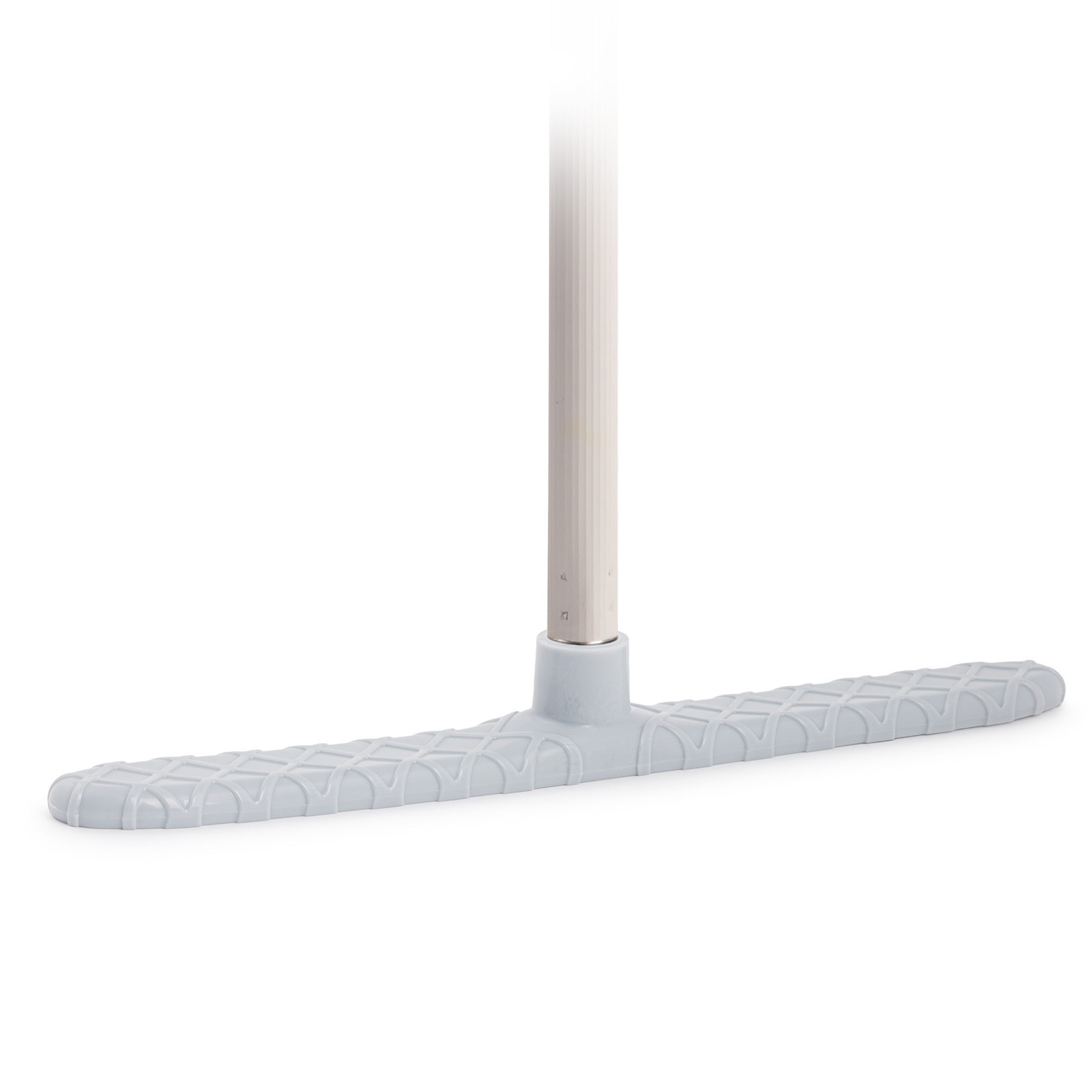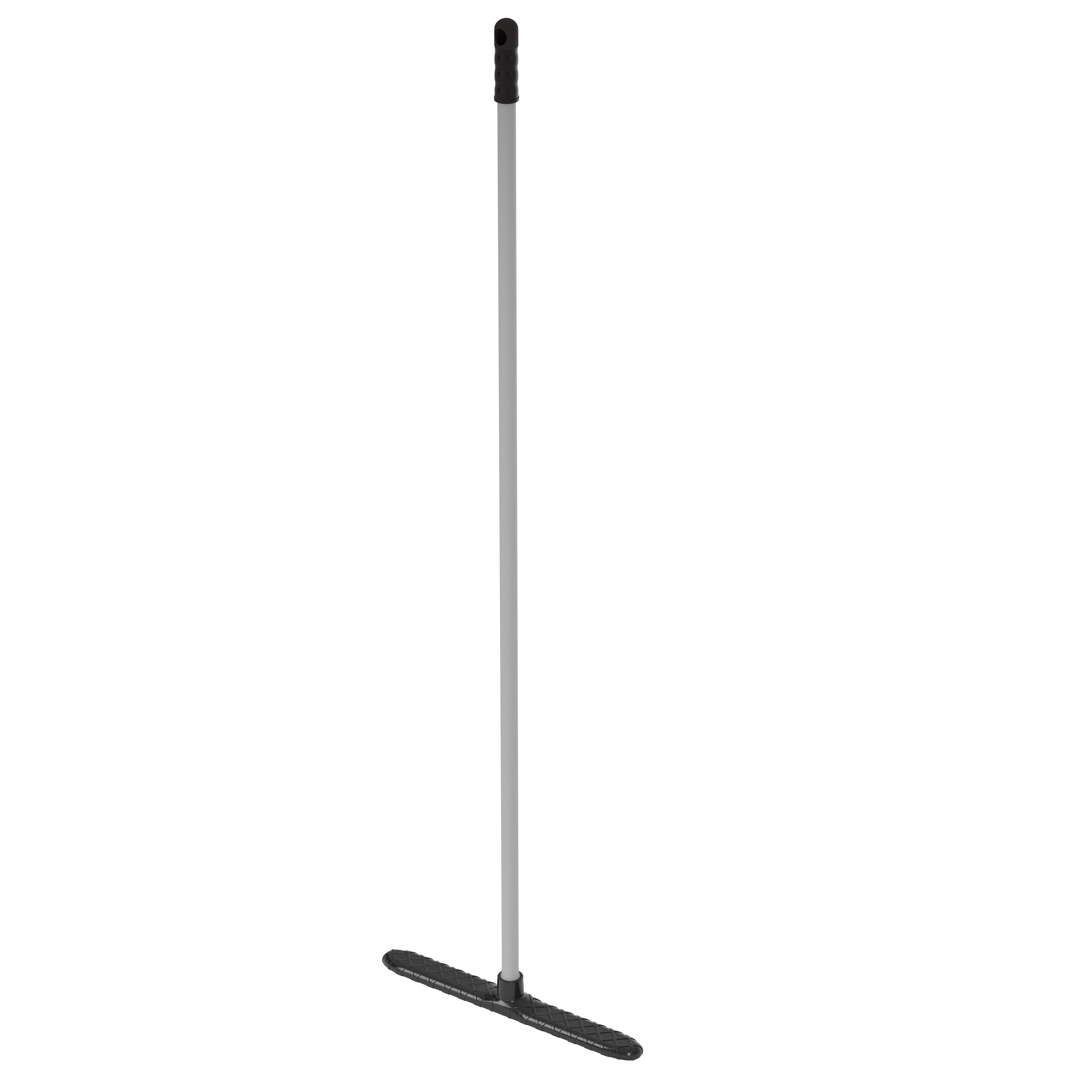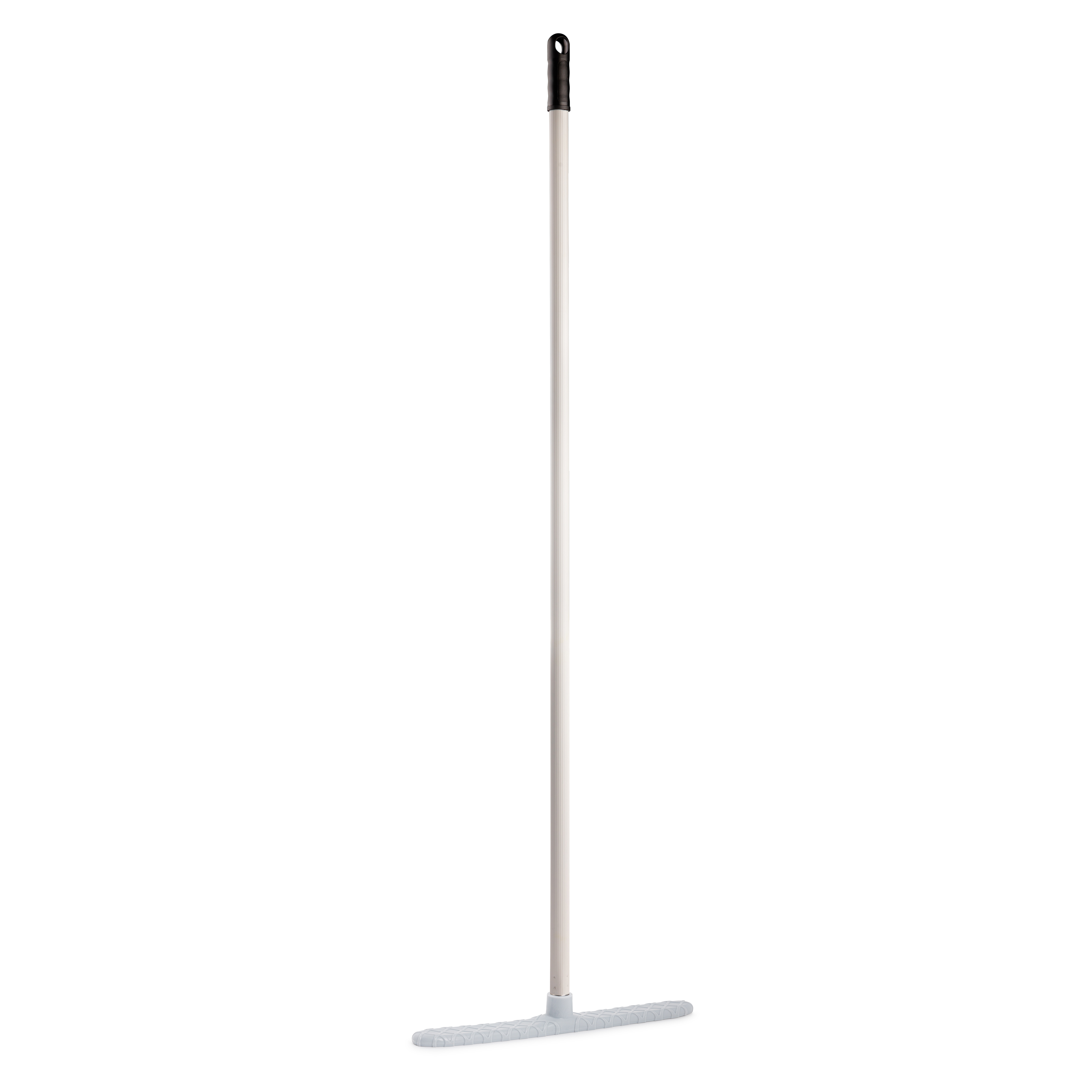 Конструкция изделия состоит из швабры и черенка. Насадка произведена из полипропилена и имеет ребристую поверхность. Черенок имеет алюминиевый каркас и покрыт ребристой пленкой, благодаря чему швабра не будет выскальзывать из рук. Изделие имеет компактный размер и не займет много места при хранении.