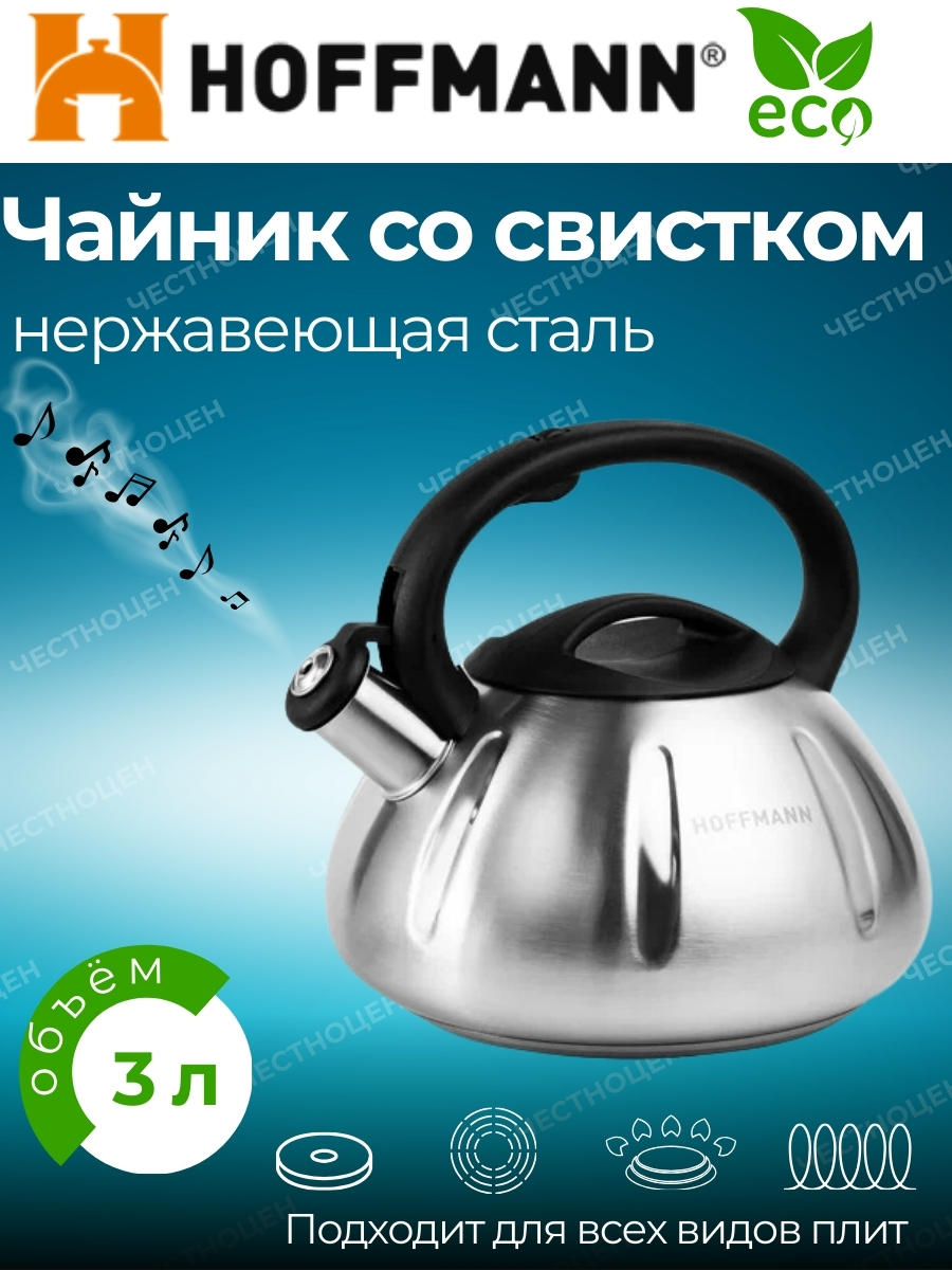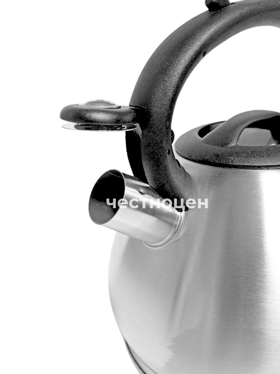 Чайник изготовлен из прочной нержавеющей стали и оснащен ручкой, которая не нагревается во время использования. Прочные стенки толщиной 0,6 мм обеспечат долговечность, а стильное матовое покрытие позволит чайнику вписаться в любой кухонный интерьер.