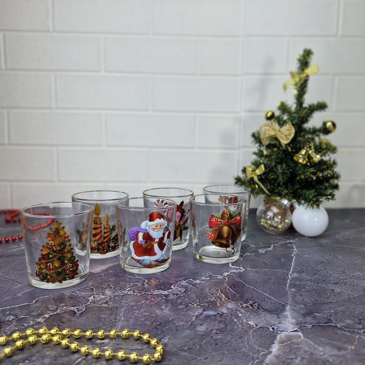 Набор новогодних стеклянных стаканов подойдет как для ежедневного использования, так и для сервировки стола к приходу гостей.