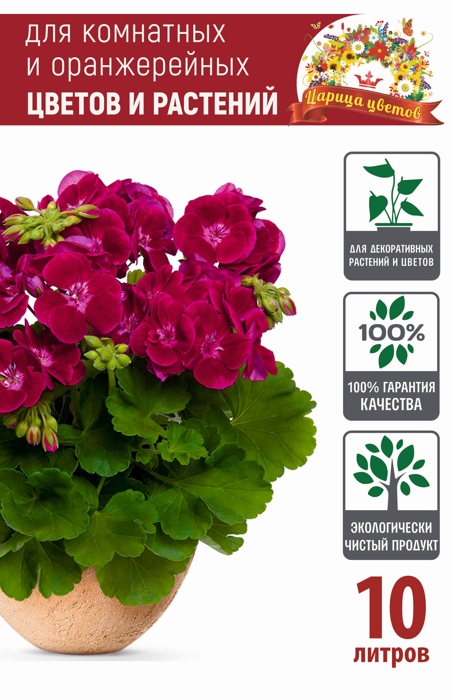 Грунт "ЦАРИЦА ЦВЕТОВ" для комнатных, оранжерейных и декоративных цветов и растений 10 л