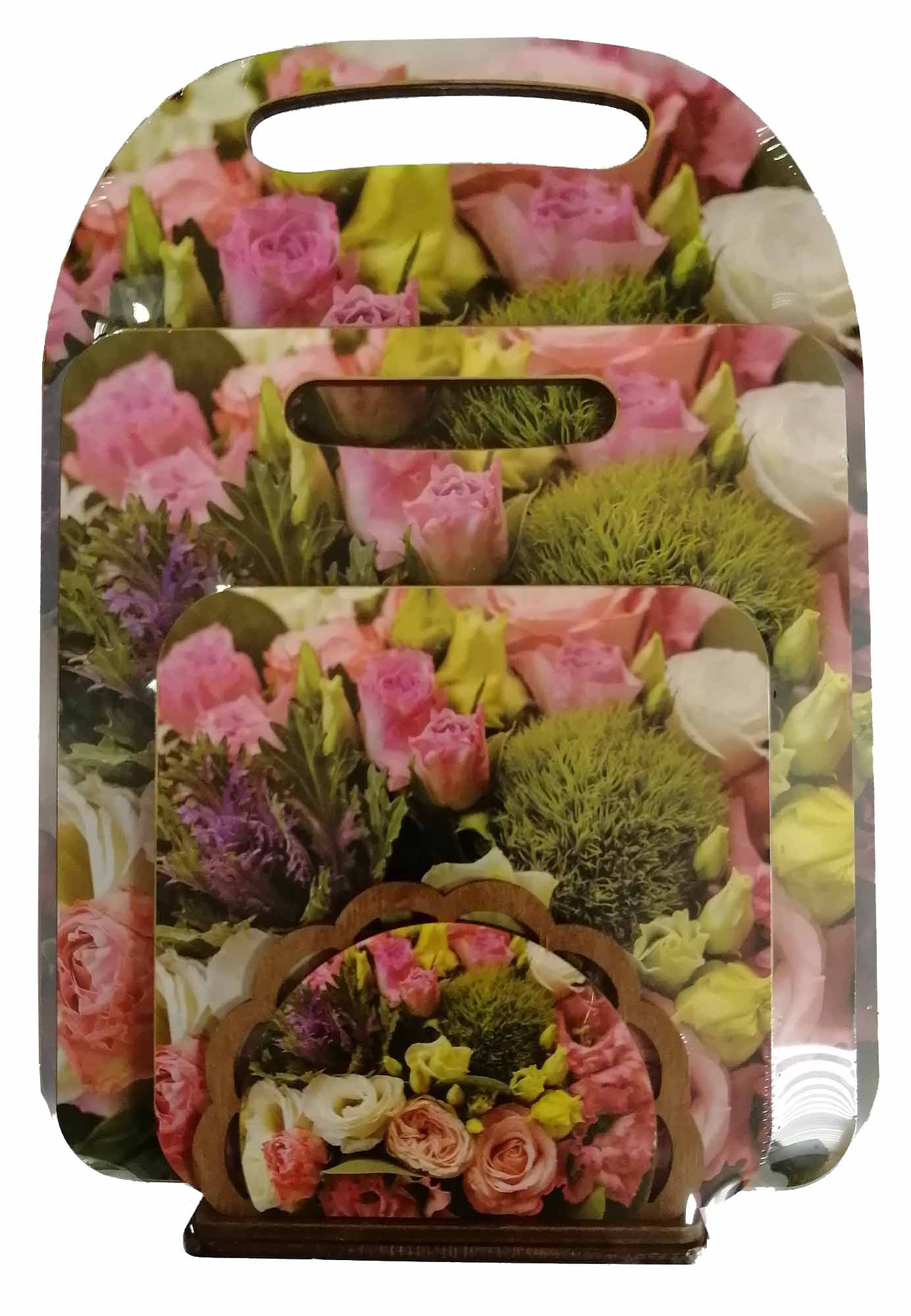 Комплект: Розы (доска разд, доска мал, подставка под горячее, салфетница) КМ-2