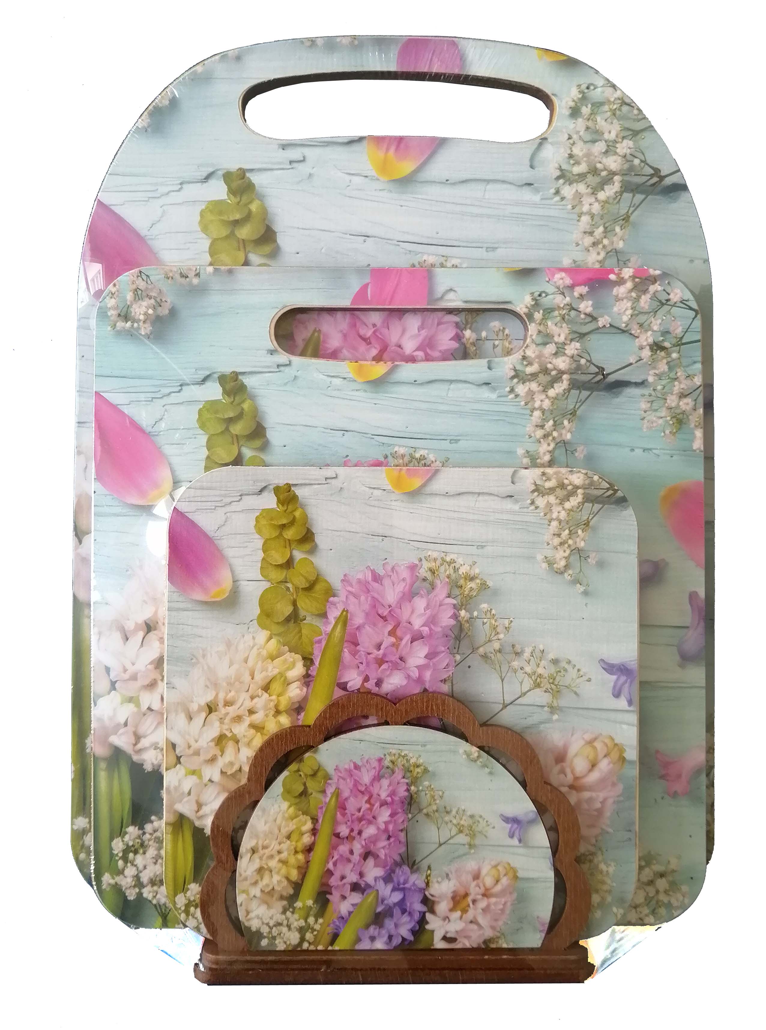 Комплект: Гиацинт (доска разд, доска мал, подставка под горячее, салфетница) КМ-4