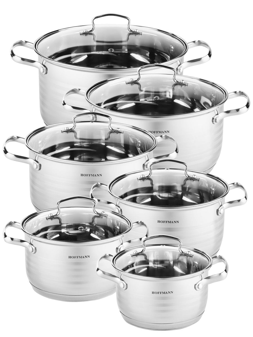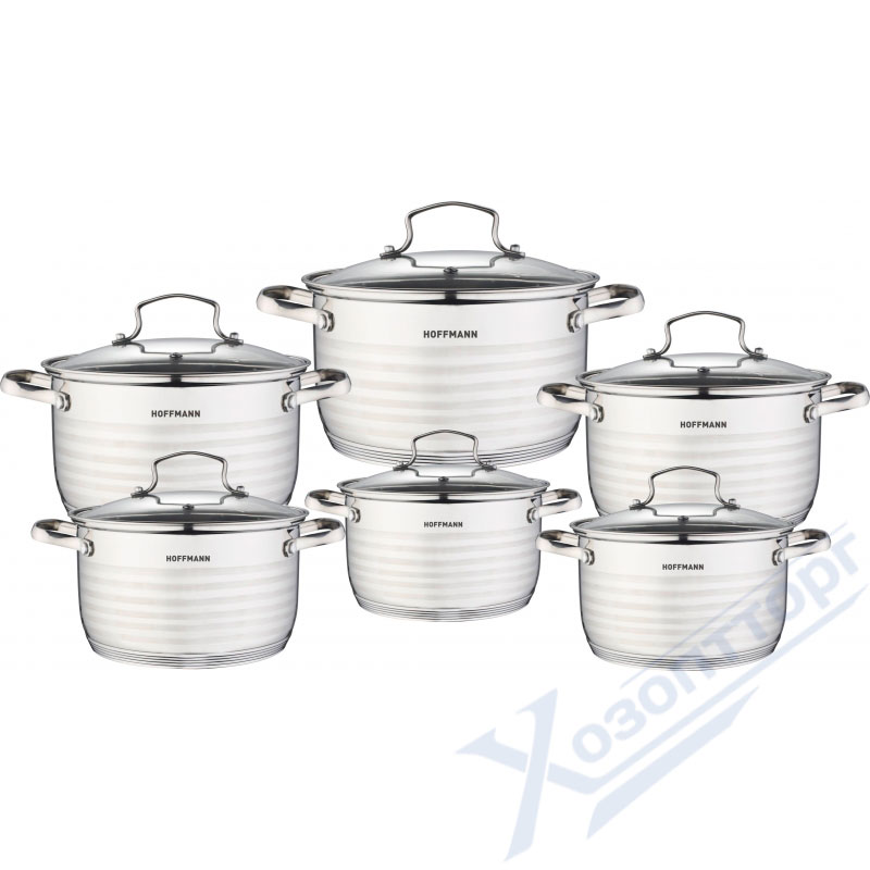 Набор кастрюль нержавеющая ст. 12пр (кастр. 6шт. - 7,3л, 5,8л, 4,5л, 4,1л, 3,1л, 2,1л) НМ 5133