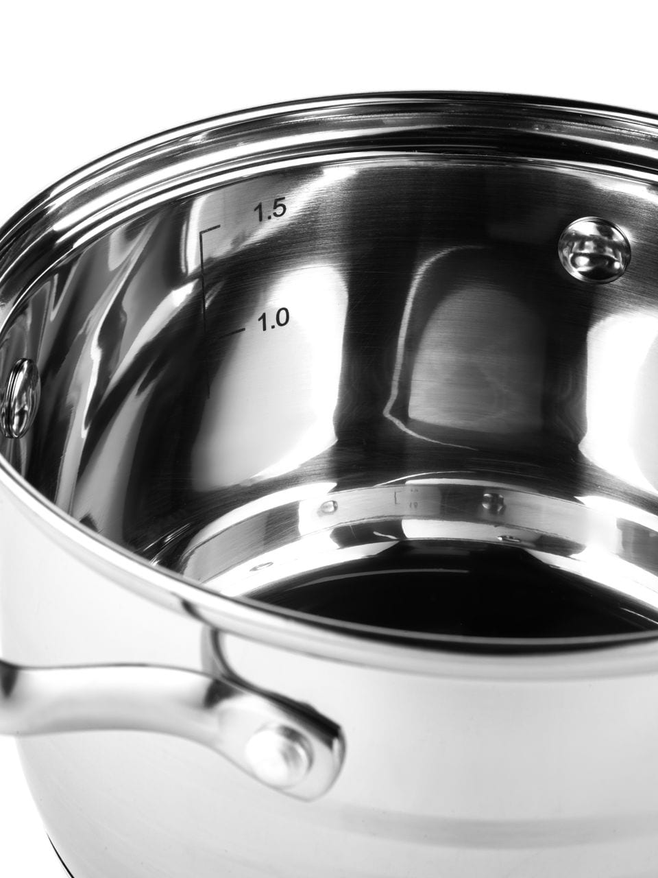 Набор кастрюль изготовлен из высококачественной нержавеющей стали. Благодаря энергосберегающему капсульному дну, тепло равномерно распределяется по стенкам посуды. Для приготовления пищи в такой посуде требуется минимальное количество масла, тем самым уменьшается риск потери витаминов и минералов в процессе термообработки продуктов.Специальный ободок по краям изделий предотвращает растекание жидкости при наполнении и переливании, что способствует сохранению чистоты стенок. Посуда оснащена удобными металлическими клепаными ручками. На внутренней стенке имеются отметки литража.Крышки выполнены из термостойкого прозрачного стекла, оснащены ручкой, металлическим ободом и отверстием для выпуска пара. Такие крышки позволяют следить за процессом приготовления пищи без потери тепла. Они плотно прилегают к краю и сохраняют аромат блюд.одходит для всех типов плит, включая индукционные. Можно мыть в посудомоечной машине.Состав набора: 7,3л, 5,8л, 4,5л, 4,1л, 3,1л, 2,1л