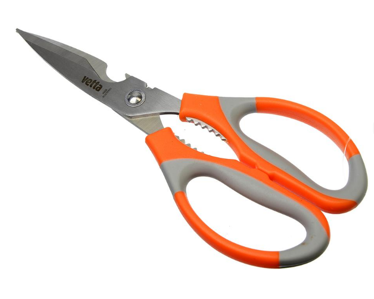 Универсальные кухонные ножницы всегда необходимы для разделки готовой курицы, вскрытия упаковок, чистки рыбы и др. Также ножницы имеют функцию раскалывания орехов и открывалки бутылок. Ножницы кухонные сделаны из высококачественного металла. Ножницы имеют надежное винтовое крепление.