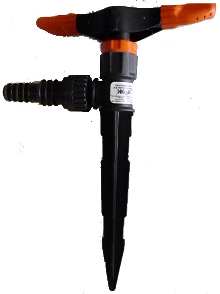 Распылитель 2-х лепестковый Жук под коннектор предназначен для стационарного полива растений в клумбах и различных небольших участках. Два вращающихся сопла осуществляют равномерный круговой полив сада. Крепится к шлангу через коннектор. Благодаря специальному колышку происходит надежное крепление аппарата к поверхности. Приспособление позволяет значительно экономить время и силы, затрачиваемые на полив растений. Нужно просто включить распылитель и можно заниматься другими делами в то время, как будет проходить полив. Приспособление выполнено из пластика.